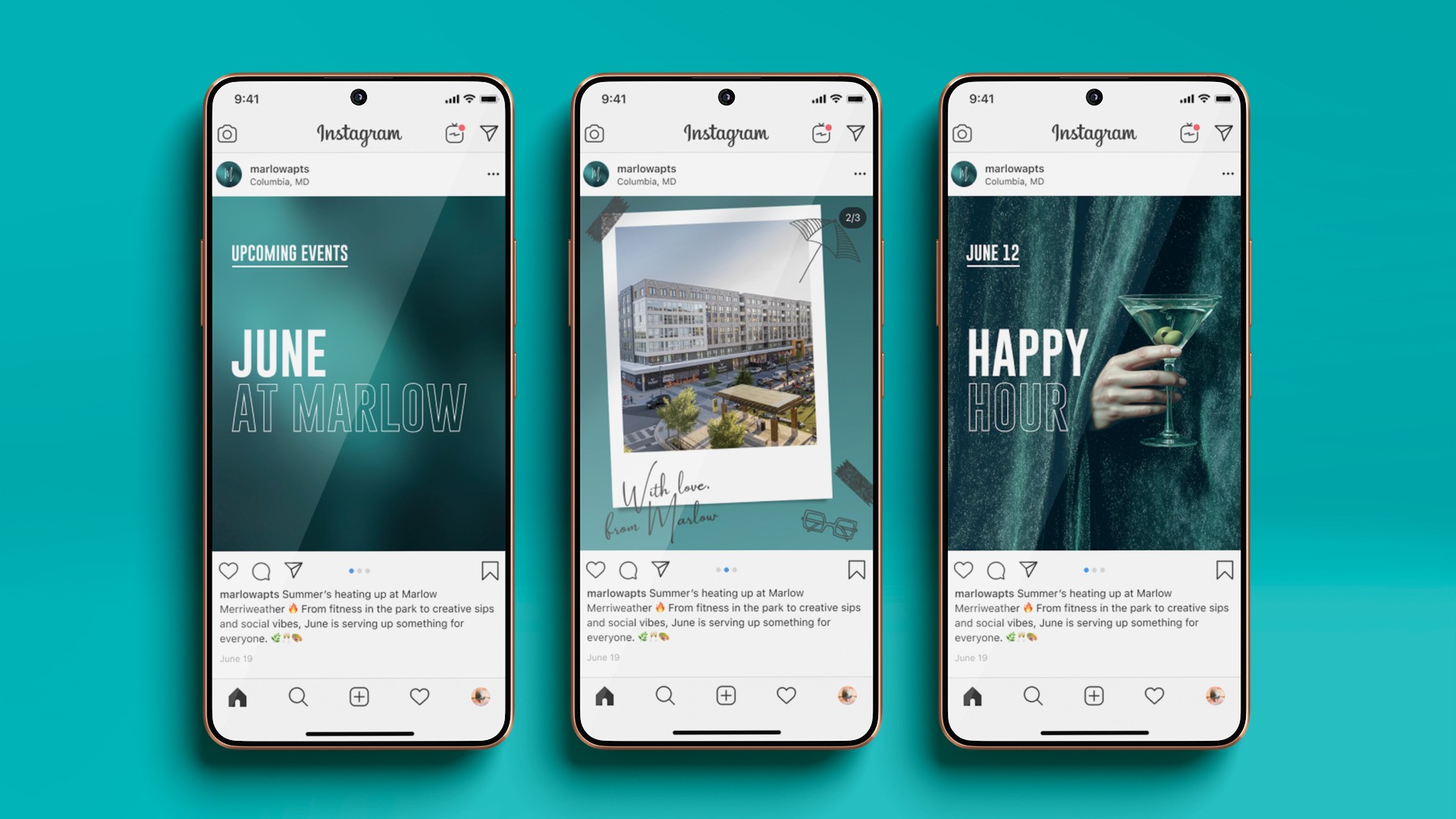 The resulting brand system brought Marlow to life as a mixed-use community with personality and momentum. A cohesive visual and verbal identity extended across digital, social, environmental, and leasing touchpoints—supporting both resident attraction and neighborhood presence while giving Marlow a distinct, recognizable voice.